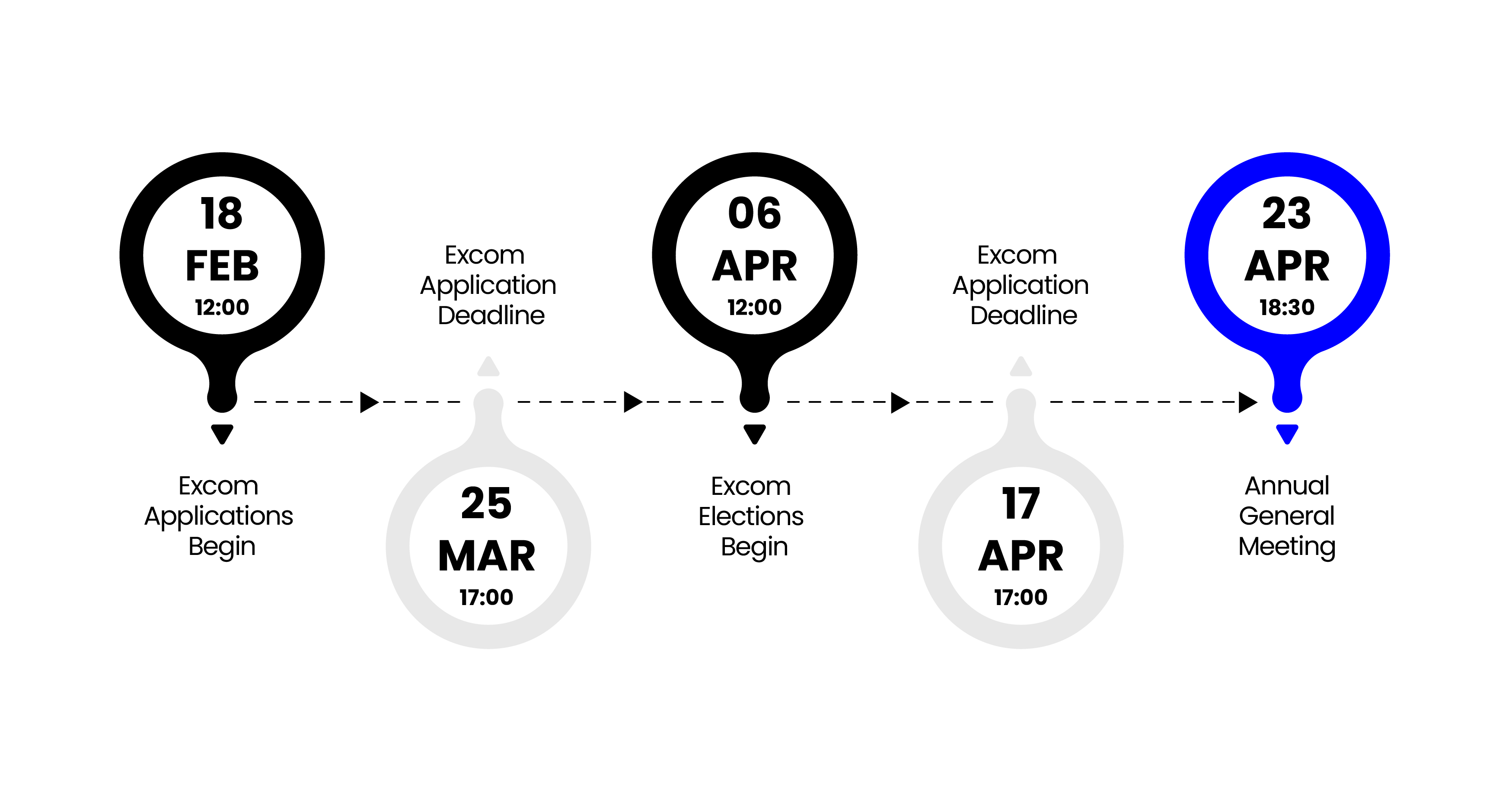 The 2026-2027 application and election timeline is as follows: