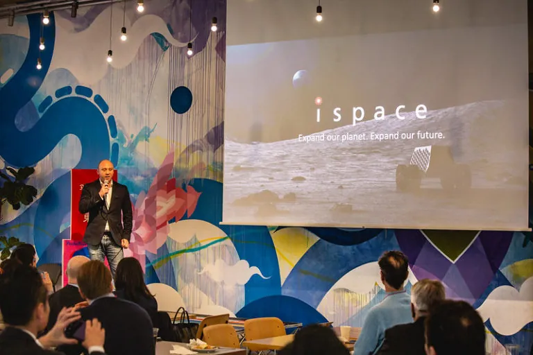 Kyle Acierno, vice president of global sales at ispace, introduced the lunar robotic exploration firm. It is developing micro-robotic technology to provide a low-cost and frequent transportation service to and on the moon. It also aims to conduct lunar surface exploration to map, process and deliver resources within the moon’s orbit.