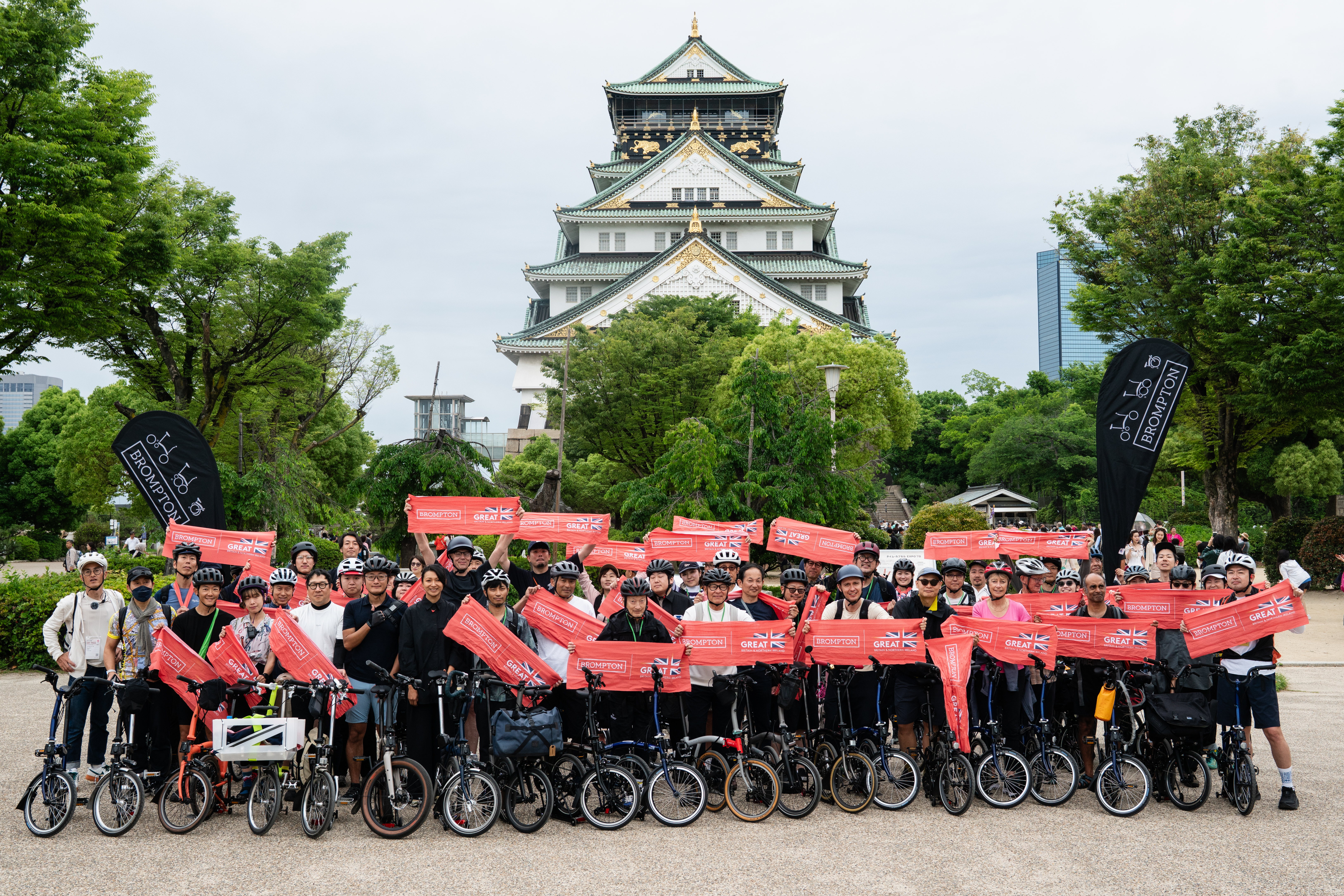 For Brompton, it was great honour to be partnering with the UK Pavilion at the EXPO in Osaka. It was a rare opportunity, and an extra special one. It was very special, how we were uniquely able to engage by hosting a ride starting from the Osaka Castle at the EXPO70 Time Capsule, and riding to the EXPO venue by Brompton bikes with UK Pavilion staff and customers.