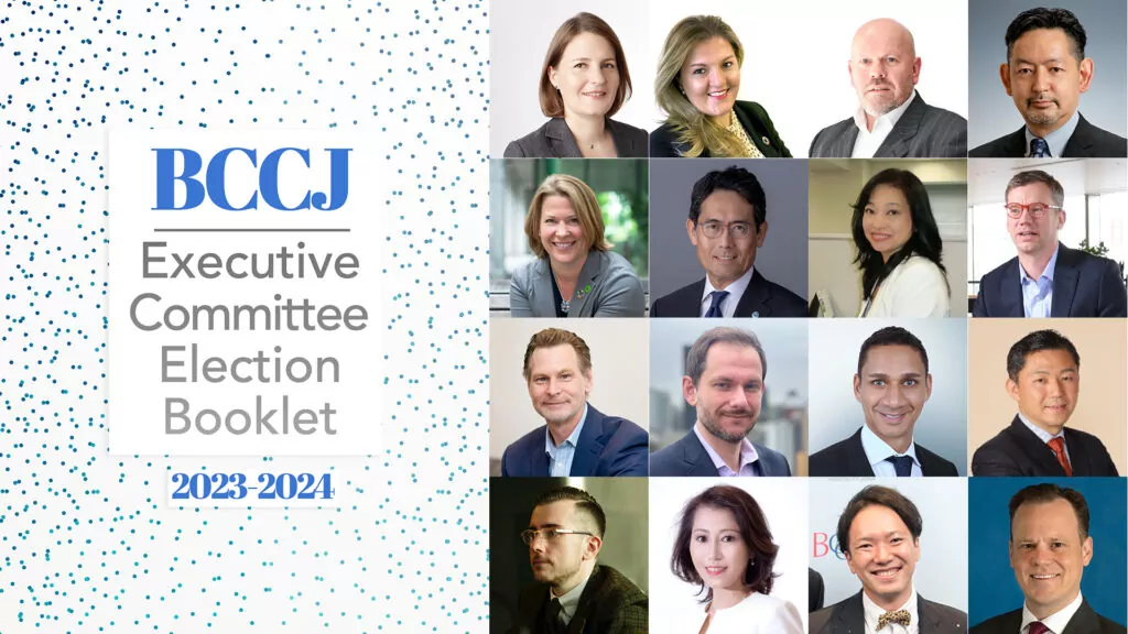 The results of the 2023-2024 Excom election will be announced at the BCCJ Annual General Meeting (AGM), to be held from 1830-2100 on April 27 at Charmant Scena Tokyo, in the presence of HM Ambassador to Japan, Julia Longbottom CMG. This event includes a light buffet and drinks reception and is free for all BCCJ members (currently limited to one representative per company due to capacity).