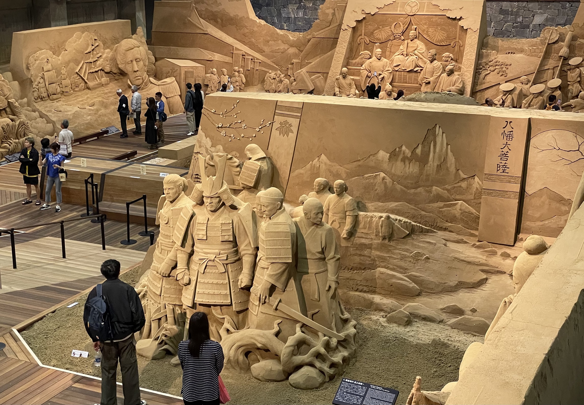 The Tottori Sand Dunes are the most popular sightseeing spot in Tottori, attracting more than 1.3 million visitors annually. Drawing on the area’s connection to sand, the nearby Tottori Sand Museum is the world’s first permanent indoor exhibition space dedicated to sand art. Since opening in 2006, it has held different exhibitions, this year featuring sand sculptures created by 20 world-class artists from 12 countries on the theme of Japan.
