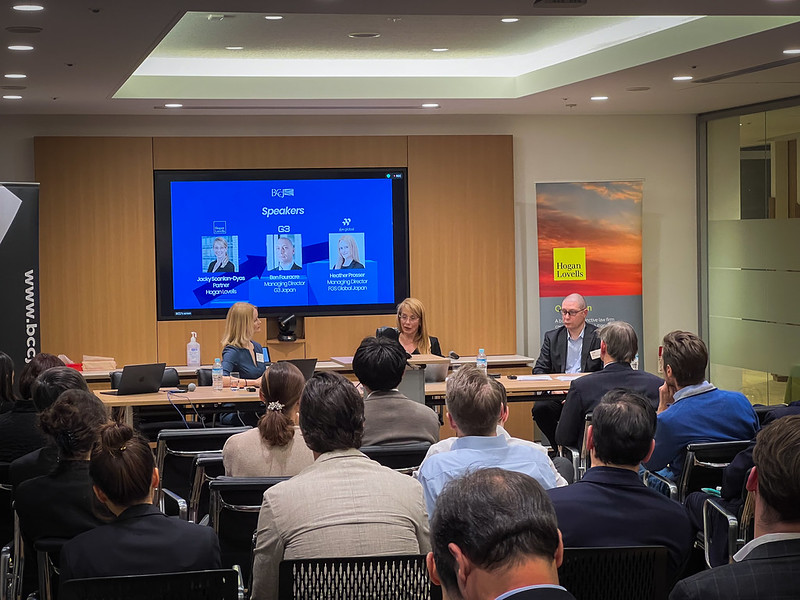 The British Chamber of Commerce in Japan held an event in February to consider how capital, governance reform and global pressure are reshaping the ways Japanese companies grow, restructure and compete, as well as the resultant implications for leadership, talent, strategy and cross-border business. Hosted by Hogan Lovells in Tokyo, the event featured speakers Jacky Scanlan-Dyas, Partner and Head of the Corporate & Finance Practice Group for APAC at Hogan Lovells, and Ben Fouracre, Managing Director and Head of Japan at G3, with moderation by Heather Prosser, Managing Director of FGS Global.